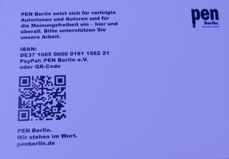 Eine Veranstaltung des PEN Berlin – PEN Berlin erhielt 2023 17500 Euro Zuwendung der Senatsverwaltung für Kultur und Europa Berlin – eine Hand wäscht die andere – Du bezahlst!