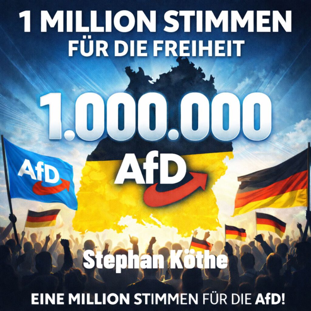 • 1.000.000 Bürgerinnen und Bürger wählen die AfD – trotz maximaler öffentlich-rechtlicher Indoktrination! Sehr gut! 😃