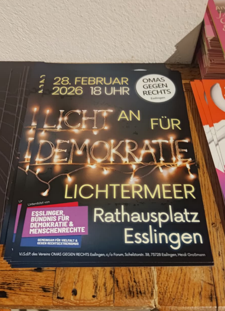 Im KOMMA Esslingen kleben aktuell „Fck-AfD“ Aufkleber an der Wand, es liegen Flyer aus, welche zu einer Demo der Omas gegen Rechts aufrufen, jetzt am 28. 02. – direkt im Vorfeld der Landtagswahlen. Des Weiteren liegt eine Broschüre „Rechere gegen Rechts“ aus, in welcher die AfD auf das übelste diffamiert wird.