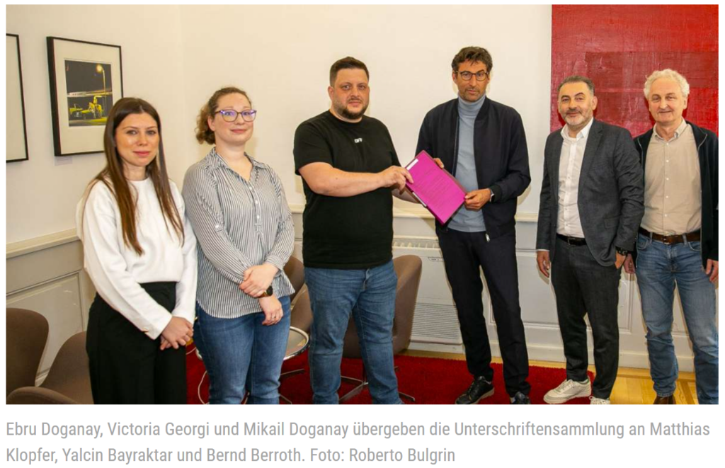Anmerkung vom 15.04.2026: in der gedruckten Ausgabe der Esslinger Zeitung ist obenstehende Bild, welches die Übergabe der Petition zeigt, nicht enthalten. Auf dem Foto, welches beim Artikel in der gedruckten Ausgabe verwendet wurde, fehlt Herr Anderka auch, da es aus einem Winkel aufgenommen wurde, in dem er nicht zu sehen ist.