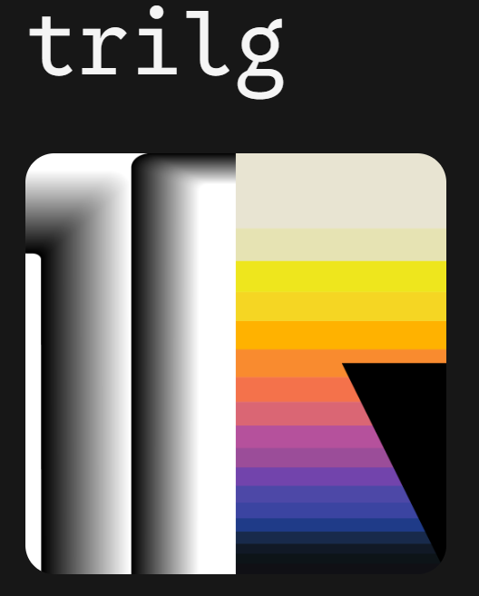 Mit der trilg.app von Tobias Rehberger kannst Du demnächst jetzt ganz einfach Dein persönliches Buchstabenbild auf Deinem Handy (Android & iPhone) erstellen: https://trilg.app/
