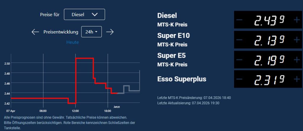 Wer kann, tankt kurz vor 12:00 Uhr. Das crazy Kraftstoffpreisanpassungsgesetz sorgt um Punkt 12:00 Uhr für neue Tages-Höchstpreise.