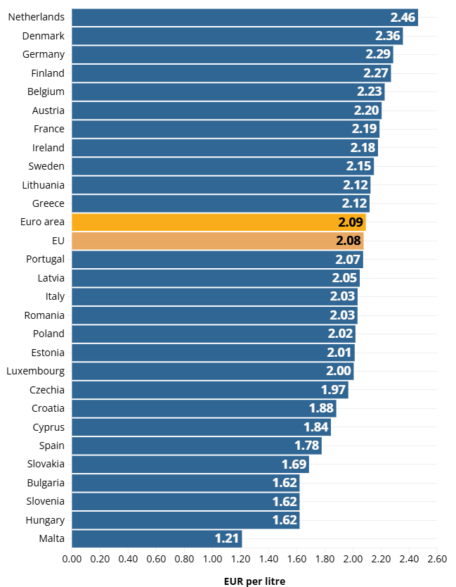 So sah es am 30.03.2026 in der EU aus (Diesel, Quelle: EU Commission):