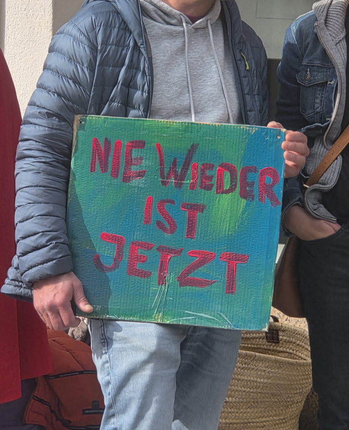 Was meinen die Gegendemonstranten mit „Nie wieder ist jetzt“? Sie wollen damit sagen, dass die AfD eine faschistische Partei ist, wie die NSDAP, die verhindert/verboten werden muss.