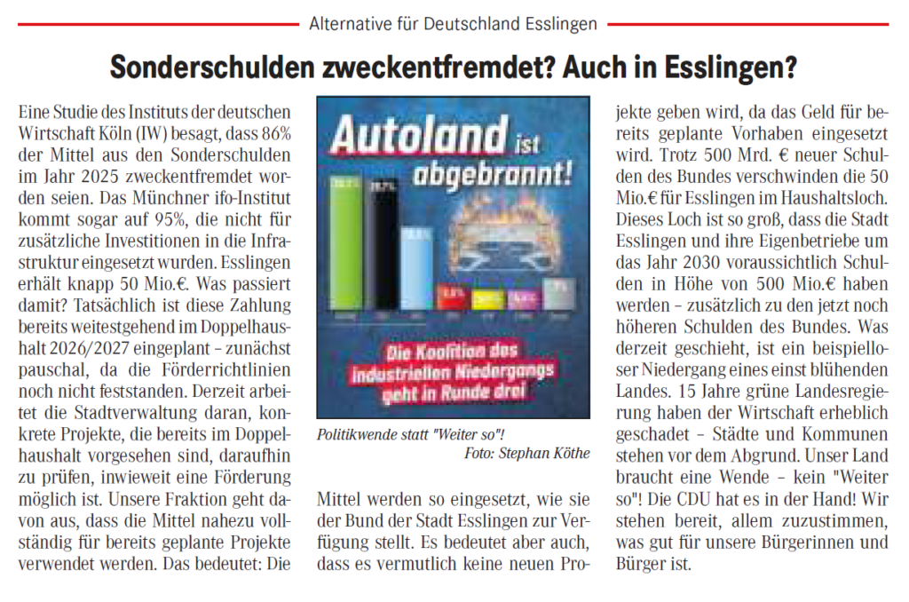 Am 20.03.2026 in der Zwiebel: Sonderschulden zweckentfremdet? Auch in Esslingen?